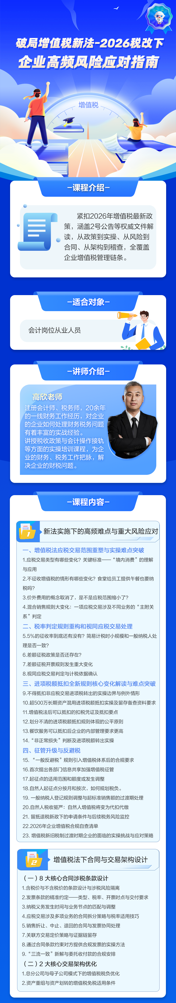 选课中心首页 > 纳税筹划 > 破局增值税新法:2026税改下企业高频风险应对指南