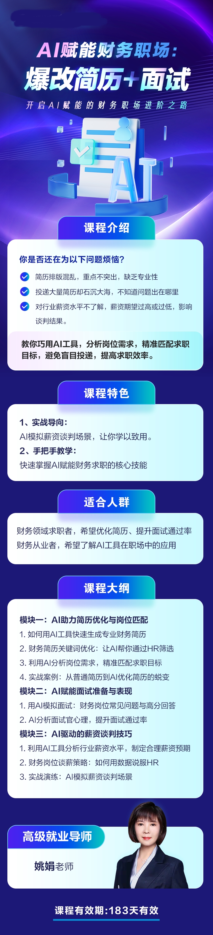 选课中心首页 > AI财税 > AI赋能财务职场:爆改简历+面试