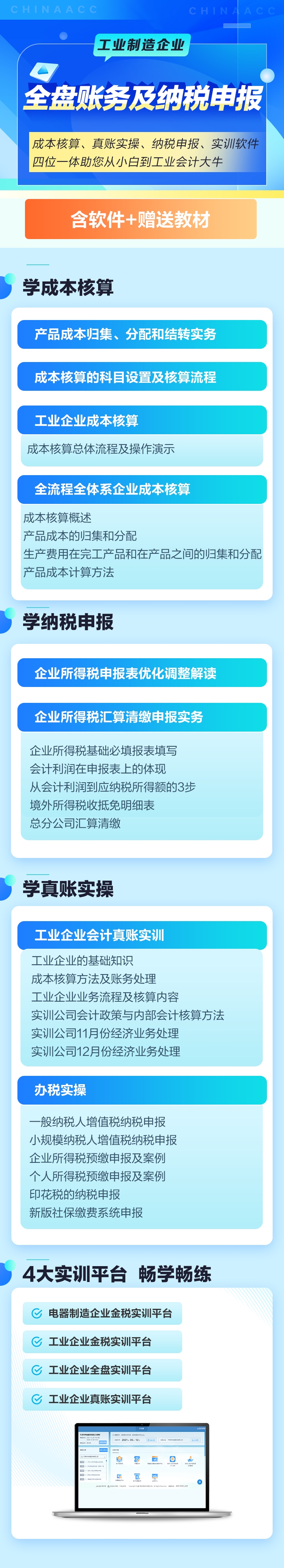 全盘财税专业+实训软件+多行业账套+班级辅导