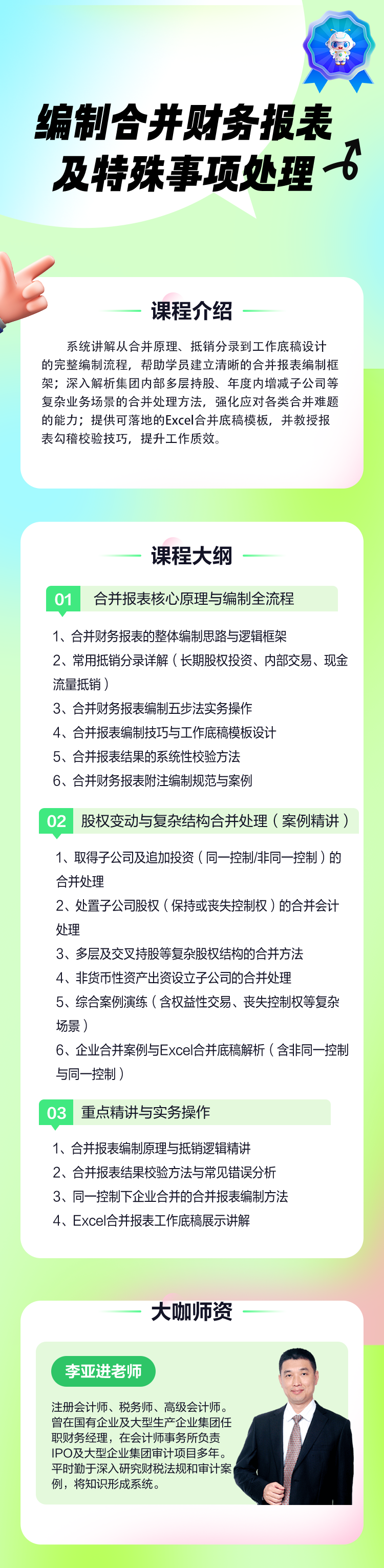 选课中心首页 > 合并报表 > 编制合并财务报表及特殊事项处理