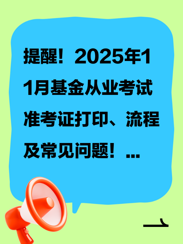 • 提醒!2025年11月基金从业考试准考证打印、流程及常见问题!