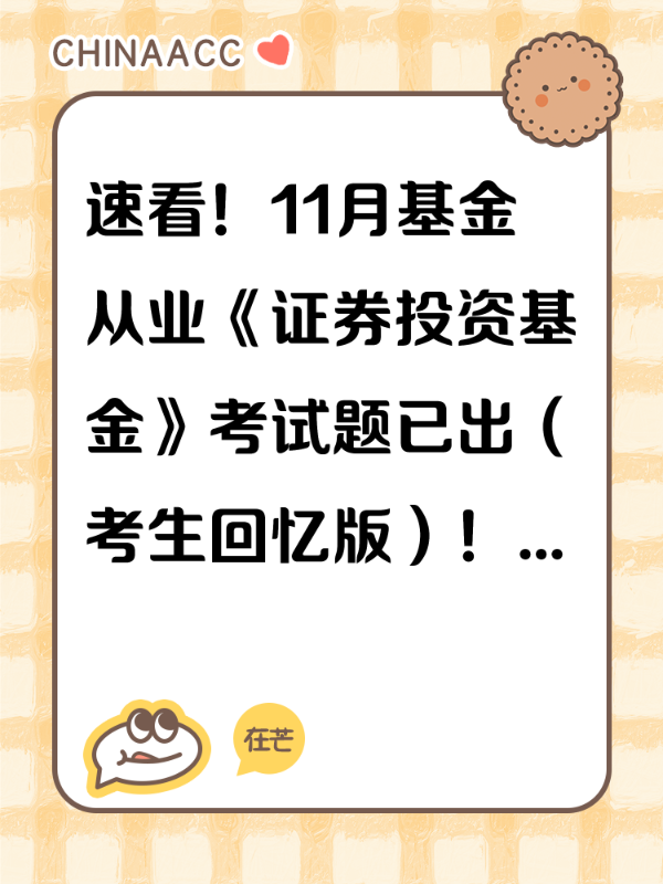 • 速看!11月基金从业《证券投资基金》考试题已出(考生回忆版)!