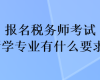 税务师考试对所学专业没有硬性要求,但是要根据学历和工作经历而定,不同条件会有不同要求。下面来参考一下2022年税务师的报考条件。2022年税务师考试报名条件(一)中华人民共和国公民,遵守国家法律、法规,恪守职业道德,具有完全民事...
