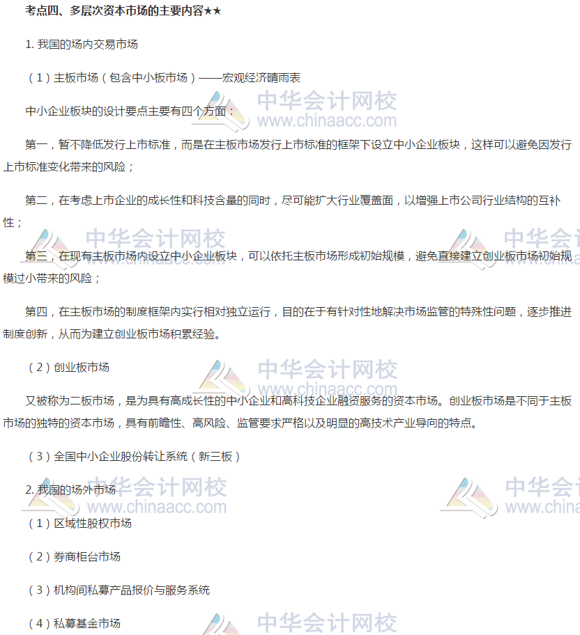 日积月累的知识点积累是备考的基石,以下是正保会计网校为大家整理的证券从业《金融市场基础知识》考点:多层次资本市场的主要内容,用于考生备考学习。祝大家备考愉快,梦想成真!