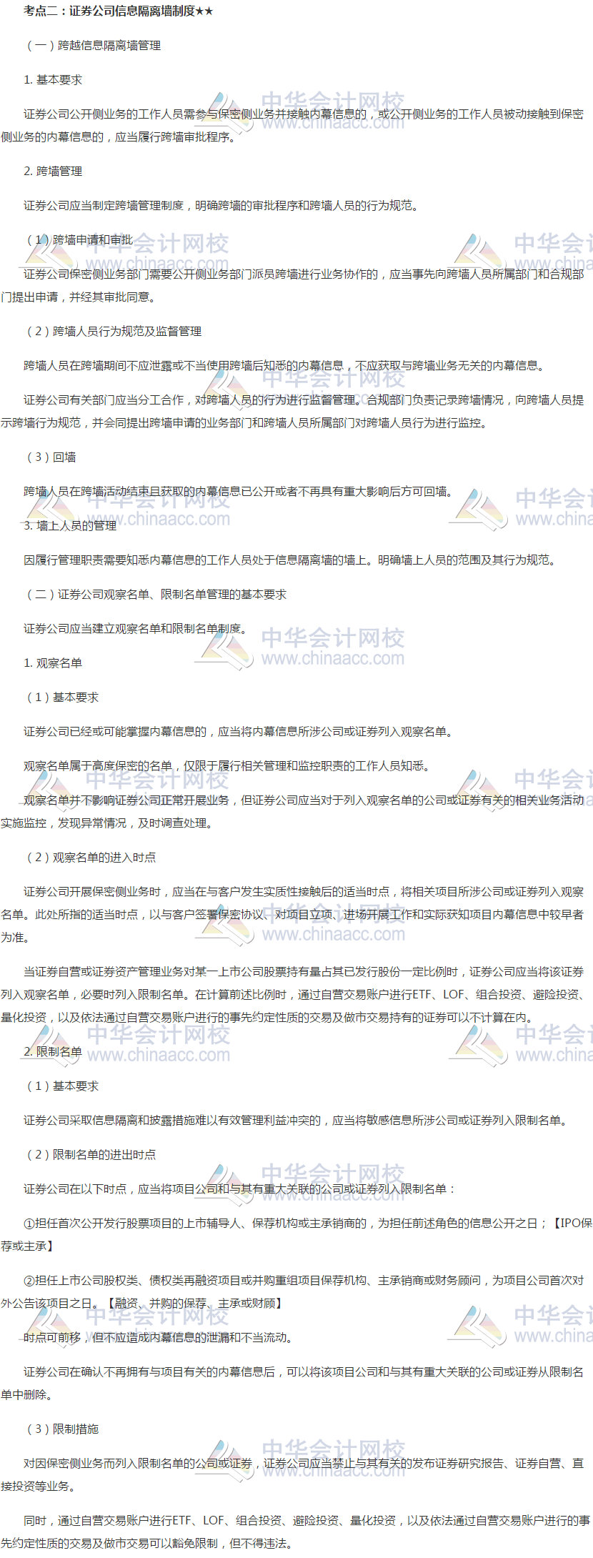 2019证券从业《证券法律法规》高频考点:证券公司信息隔离墙制度