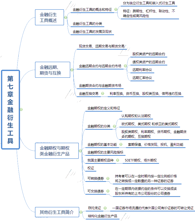 下面是证券从业《金融市场基础知识》第七章“金融衍生工具”思维导图