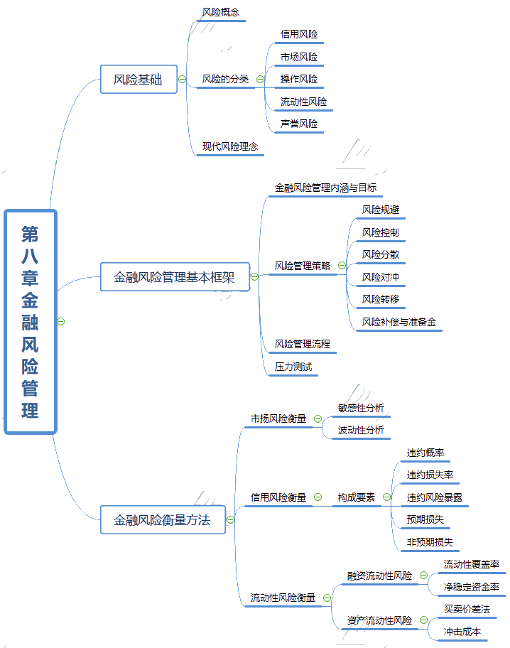 下面是证券从业《金融市场基础知识》第八章“金融风险管理”思维导图