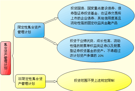 (1)集合性,即证券公司与客户是一对多的。 (2)投资范围有限定性和非限定性之分。 (3)客户资产必须进行托管。 (4)通过专门账户投资运作。 (5)较严格的信息披露。 |