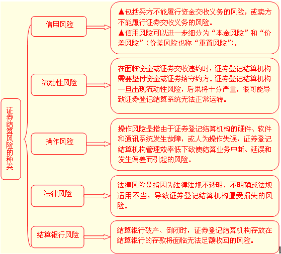 证券结算风险是证券登记结算机构在组织结算过程中所面临的风险,根据成因,大致可以将证券结算风险分为以下几类: