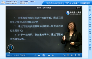 2015年证券从业资格考试备考已经拉开序幕,为了帮助广大考生提前做好备考准备,打好基础,快速进入高效备考状态,网校抢先开通2015年证券从业资格考试辅导“习题精讲班”课程(查看招生方案>>)。2015年证券从业资格考试《证券市场基础知识》讲座二课程采用新课件形式,让2015年证券从业资格考试考生充分体验新课件带来的新感受,全面提升学习效果,顺利通过考试(体验新课件>>)。