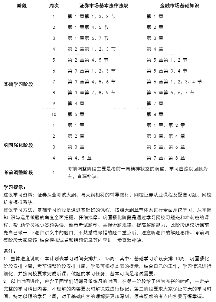 了解了自己目前所处的水平,就要制定具体的学习规划了。下面是正保会计网校制定的2021年证券从业资格考试学习计划表↓↓