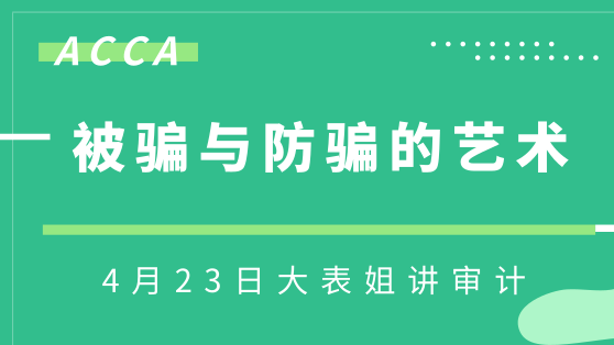 4月23日晚七点半,大表姐将免费支招儿~告诉我们在审计工作当中,如何才能掌握一门被骗和防骗的艺术。