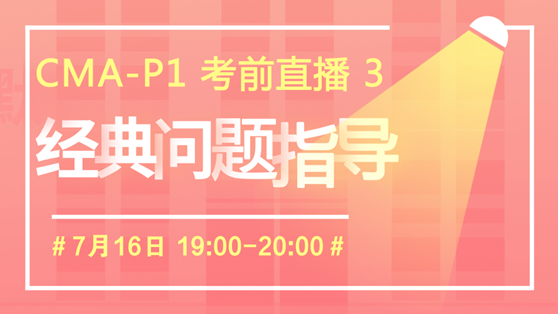 距离考试还有半个月的时间,为帮助广大考生及时调整考前复习状态、高效利用时间进行考前冲刺,7月9日、11日、16日,网校特邀CMA教研专家Eva老师为大家带来CMA-P1考前答疑直播,结合历年考试概况,与大家分享老师在多年教学过程中总结的解题技巧,解析考试重难点!