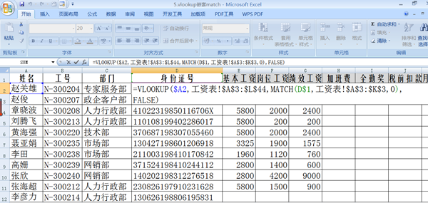 案例:给定部分人员,从工资总表上返回其所有工资相关数据