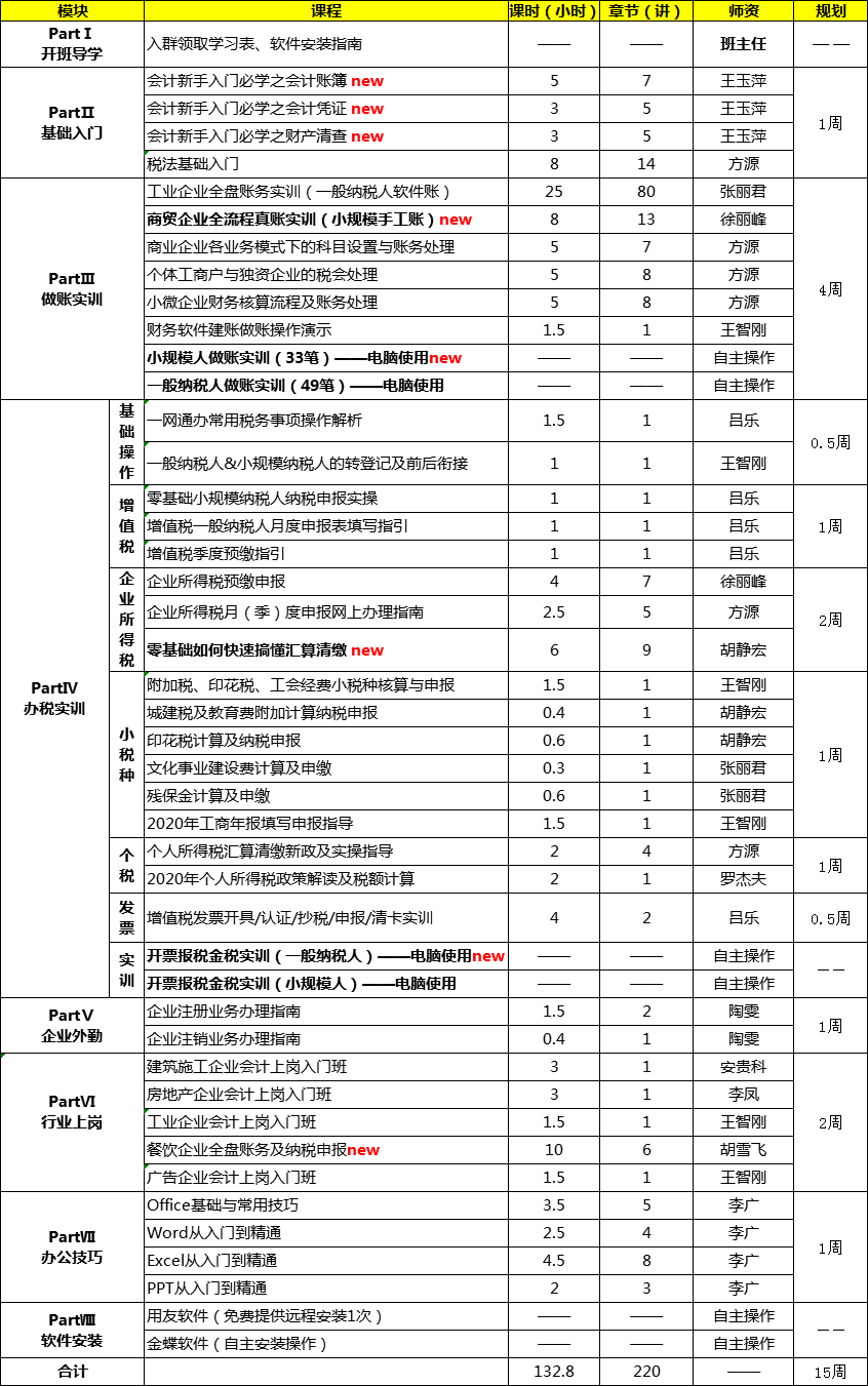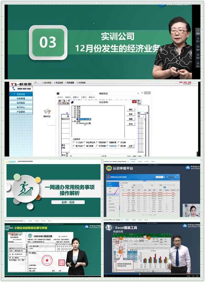 做账、报税、发票、office、行业、软件六大板块助力全能胜任
