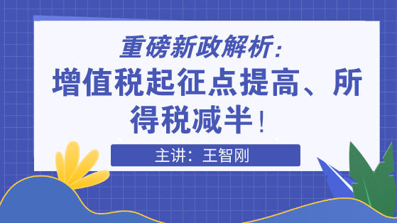 本次直播针对该项新的优惠政策进行分析讲解,为纳税人清晰理解税收优惠政策,提前做好准备调整工作。