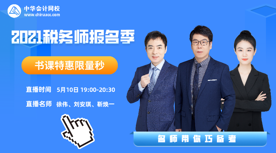 这个直播有点不一样~ 今晚徐伟、刘安琪、靳焕一三位名师做客 “2021税务师报名季 书课特惠限量秒”直播间,来给大家送书课福利啦~