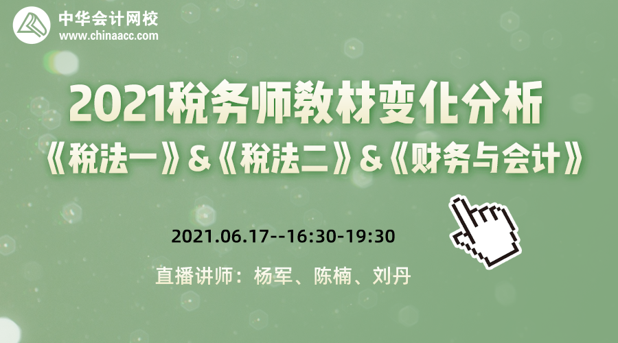 杨军老师:《税法二》2021-06-17 16:30-17:30 刘丹老师:《税法一》2021-06-17 17:30-18:30 陈楠老师:《财务与会计》2021-06-17 18:30-19:30
