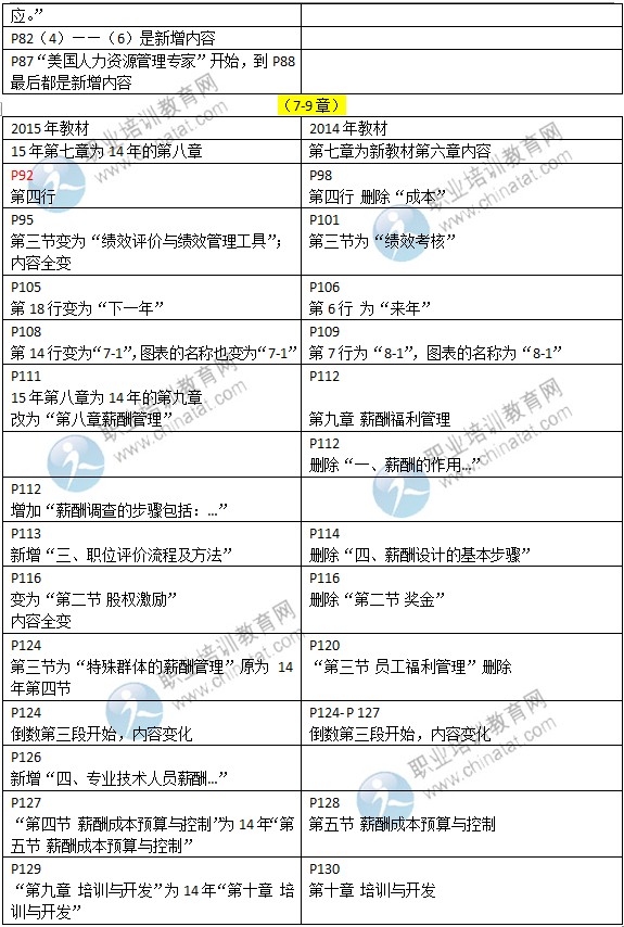 2015年经济师考试教材已经发布,为了帮助广大考生尽快了解2015年经济师考试教材情况,网校经济师频道第一时间整理了中级经济师考试教材《人力资源专业》变化对比情况,2015年中级经济师《人力资源专业》教材大部分章节内容都有调整,正保会计网校&职业培训教育网权威专家将其中的细微变化汇总如下: