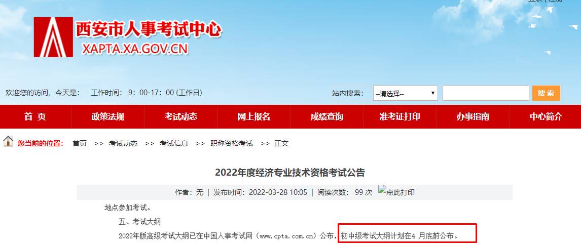 但是在3月28日西安发布的2022年经济师考试公告,计划里则提到初中级考试大纲计划在4月底前公布。(截图如下)