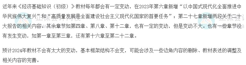 ☆2024年初中级经济师考试教材出版后,网校老师也会及时整理新旧教材变化对比,同学们可以保持关注。