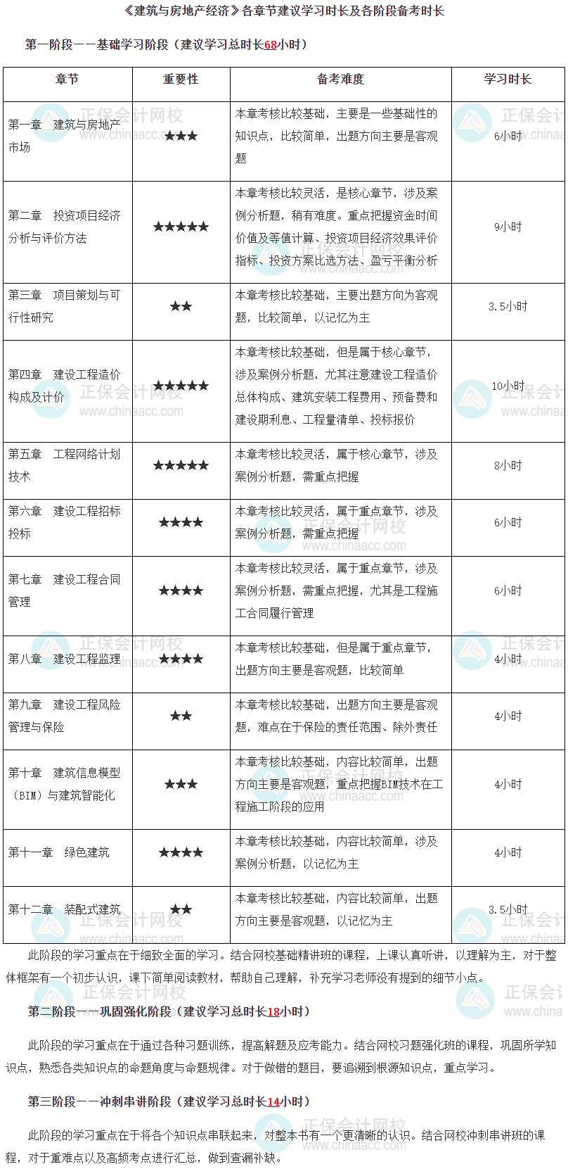 那么《中级建筑与房地产经济》科目学够多长时间比较合适呢?网校老师根据各章节的重要性以及备考难度给大家整理了建议学习时长,让我们一起来看一看吧!