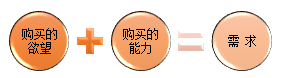 需求:在一定时间内和一定价格条件下,消费者对某种商品或服务愿意而且能够购买的数量。