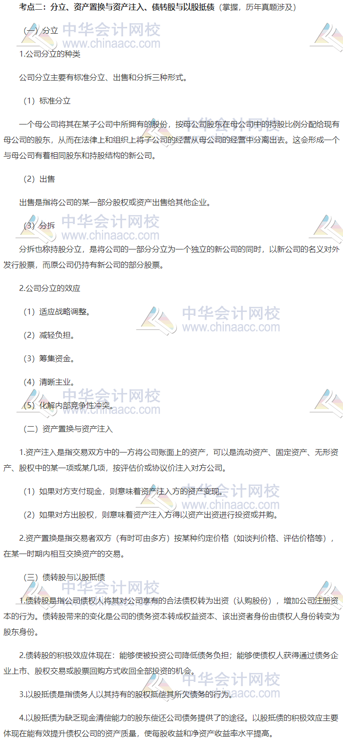 下面带来2020年中级经济师《工商管理专业》第九章高频考点:分立、资产置换与资产注入、债转股与股抵债,该考点在考试中频频遇到,一定要掌握好!