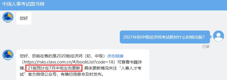 2021版初中级经济师考试教材预计在7月中旬左右出版更新。