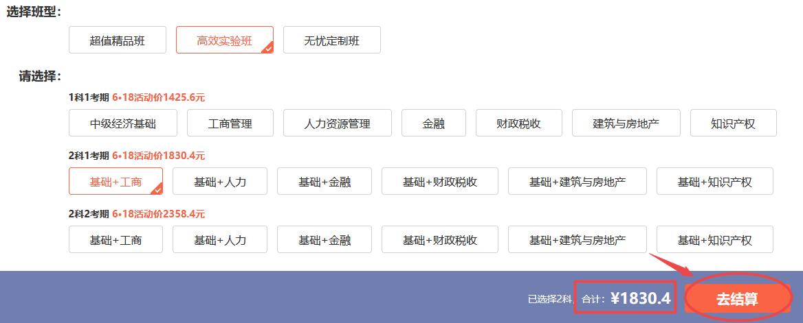看完了我们的高级经济师课程及优惠详情,大家是不是非常急切要去看看这么值得的课程要花费多少呀?别急别急,我们以高效实验班班C套餐为例,来给大家看一下