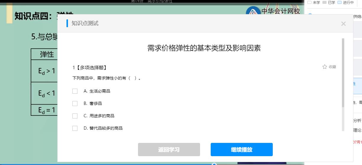 智能交互课件:学习课程的过程中,会弹出知识点测试,让你边学边练习,提高听课效果,截图如下: