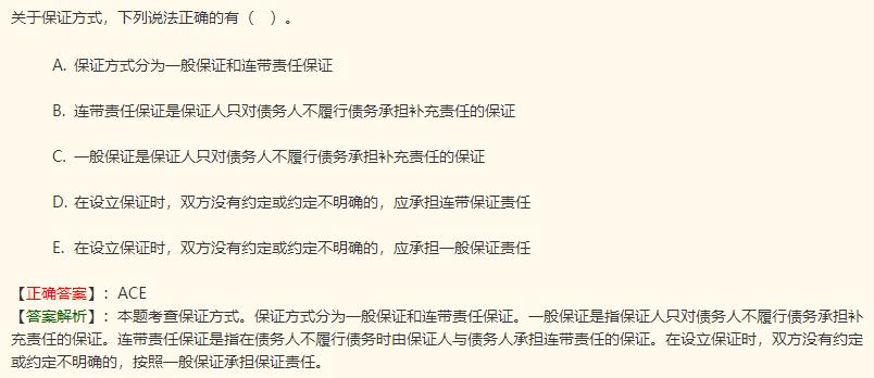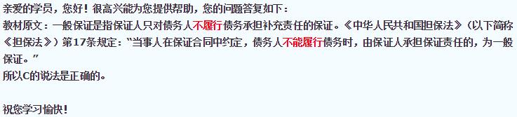 一般保证是保证人只对债务人“不能履行”债务承担补充责任的保证。讲义红字强调了。