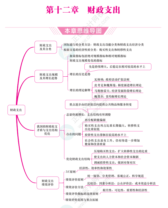 进入紧张的备考阶段后,相信大家多少都有压力,所以更应该合理安排时间、有重点地复习!正保会计网校为大家提供中级经济师各科思维导图,帮助大家更清晰地了解各章节重点学习的内容,备考有方向!以下是2021年中级经济师《经济基础知识》思维导图第十二章:财政支出,一起来看看吧!