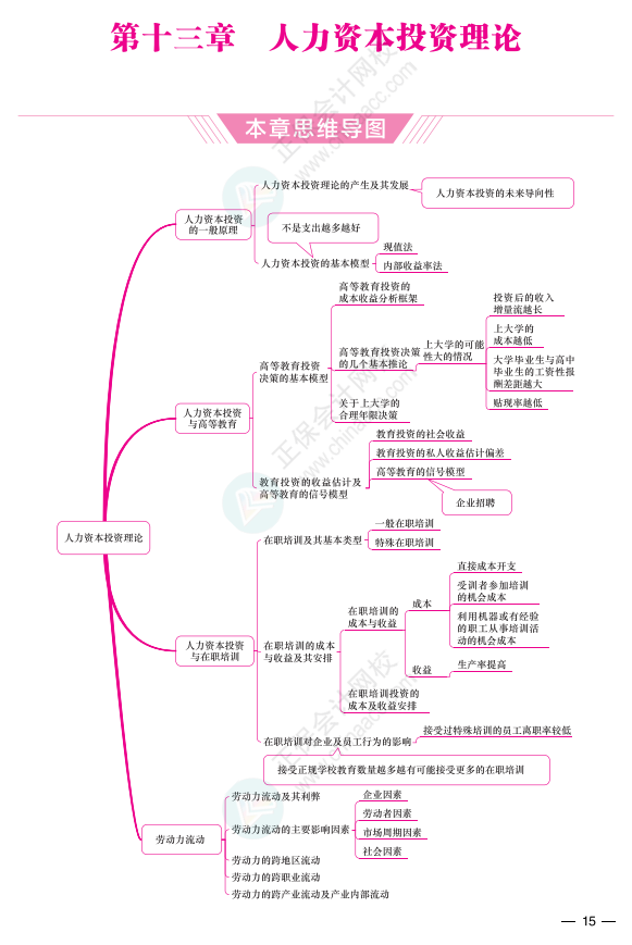 正保会计网校为大家提供中级经济师各科思维导图,帮助大家更清晰地了解各章节重点学习的内容。以下是中级经济师《人力资源管理》第十三章思维导图:人力资本投资理论,快看!