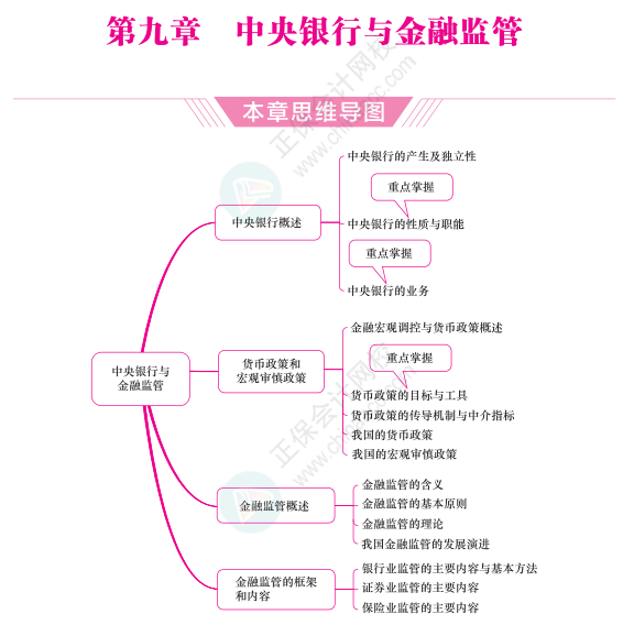 正保会计网校为广大考生提供中级经济师教材思维导图,帮助大家建立知识框架体系,熟悉重难点!以下是2021年中级经济师《金融》第九章思维导图:中央银行与金融监管,快看!