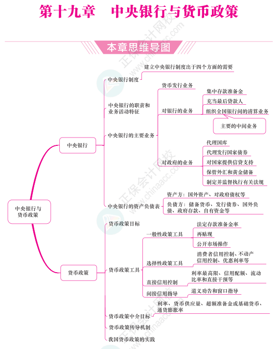 正保会计网校为广大考生提供中级经济师各科思维导图,帮助大家更清晰地了解各章节重点学习的内容。以下是2021年中级经济师《经济基础知识》第十九章思维导图:中央银行与货币政策,一起来看看吧!