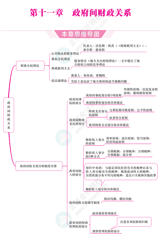 正保会计网校为大家提供中级经济师各科思维导图,帮助大家更清晰地了解各章节重点学习的内容,备考有方向!以下是2021年中级经济师《财政税收》思维导图第十一章:政府间财政关系,一起来看看吧!