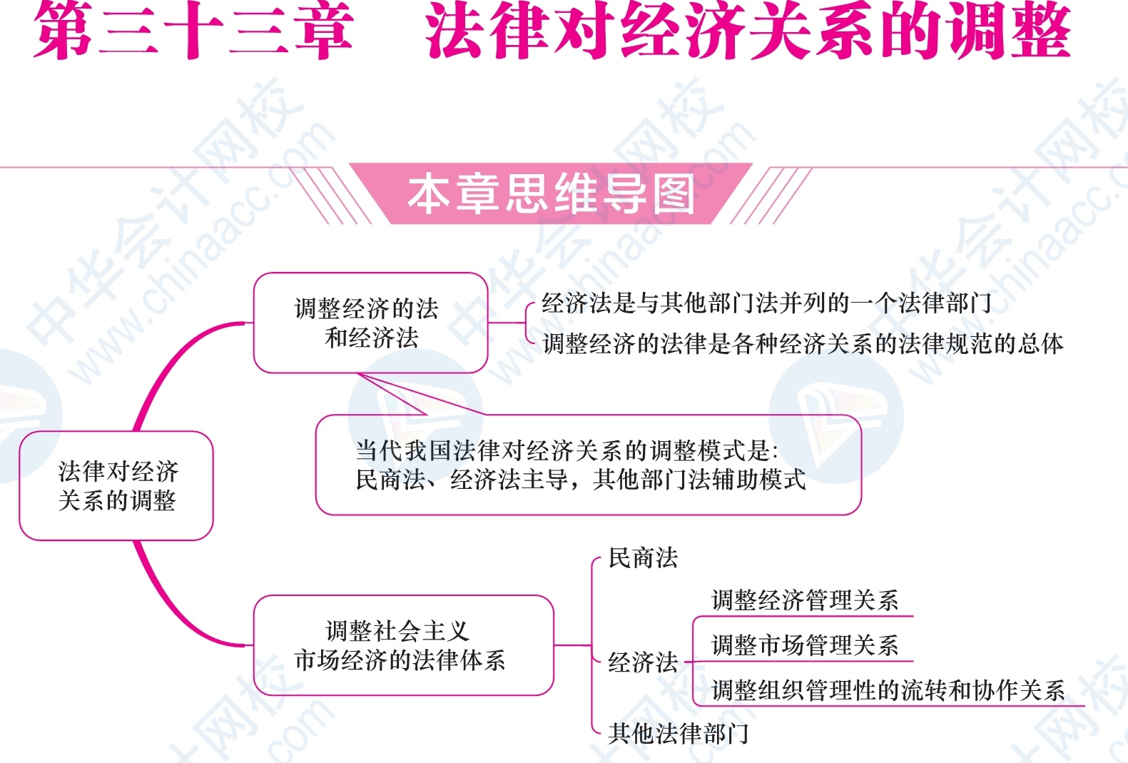 为帮助大家高效备考,正保会计网校为广大考生提供中级经济师各科思维导图。以下是2021年中级经济师《经济基础知识》第三十三章思维导图:法律对经济关系的调整,一起来看看吧!