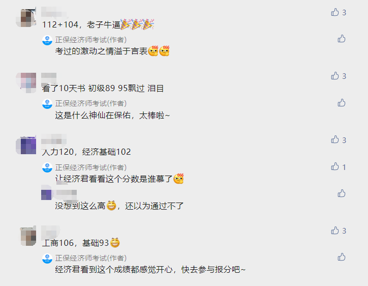 2021年初中级经济师考试成绩已公布,你考得咋样?立即查分>>,以下是部分学员在网校微信公众号下的回复,一次考过中级经济师考生比比皆是。以下是部分: