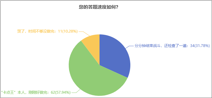 ☛ 考试题量大。据考后网校调查问卷反馈,多半考生都是卡点做完的。甚至有约10%的考生认为考试时间不够用。