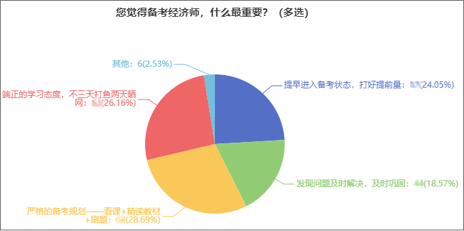 ◆参与问卷调查的考生认为:“严格的备考规划——看课+精读教材+刷题”最为重要!