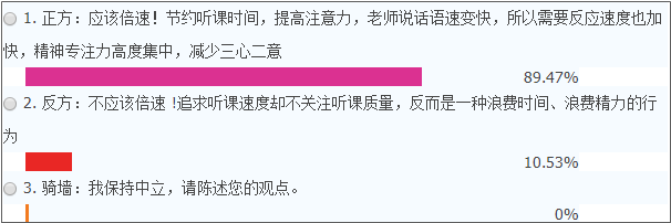 有人说:应该倍速!节约听课时间,提高注意力,老师说话语速变快,所以需要反应速度也加快,精神专注力高度集中,减少三心二意