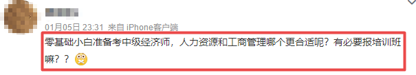 随着2022年新考季的到来,小编发现个很好的现象:很多考生都已开始了解或是着手准备中级经济师的备考了!如下截图,就有考生咨询:零基础小白准备考中级经济师,人力资源和工商管理哪个更合适呢?有必要报培训班吗?