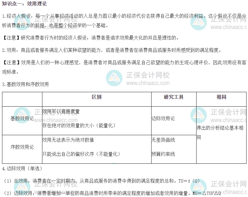 以下是中级经济师《经济基础知识》重要考点精选:效用理论