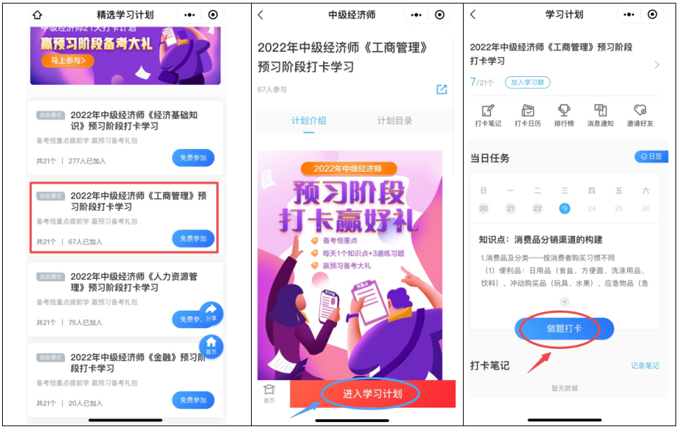 2022中级经济师备考正当时,为督促大家学习,网校特准备了2022中级经济师预习打卡活动,参与打卡计划,满足打卡天数,即可领取《经济基础知识》抢跑训练营课程(可畅学30天)+该科目备考10个重要考点、科目特点及备考建议电子版;同科目2021年应试指南精华版电子书(长期有效)+本次打卡讲义电子版。