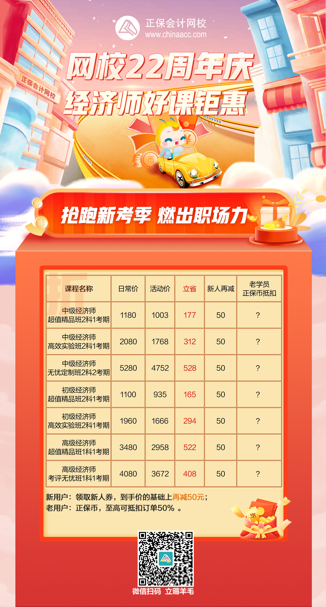正保会计网校22周年庆活动火热进行中,抢跑新考季,燃出职场力!初级、中级、高级经济师好课钜惠,低至8.5折!购课省省省!马上去看吧↓
