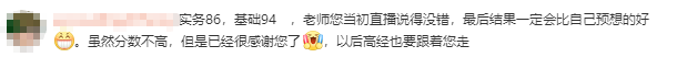 查分后,有学员在张宁老师微博下留言说:实务86,基础94,老师您当初直播说得没错,最后结果一定会比自己预想的好。虽然分数不高,但是已经很感谢您了,以后高经也要跟着您走!