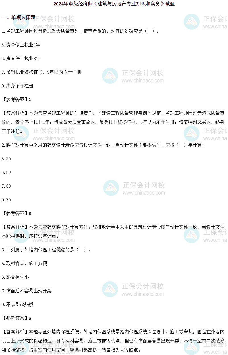 正保会计网校根据各位中级经济师考生反馈,整理了2024年中级经济师《建筑与房地产》试题及参考答案(考生回忆版),希望能帮助到大家,快来看!