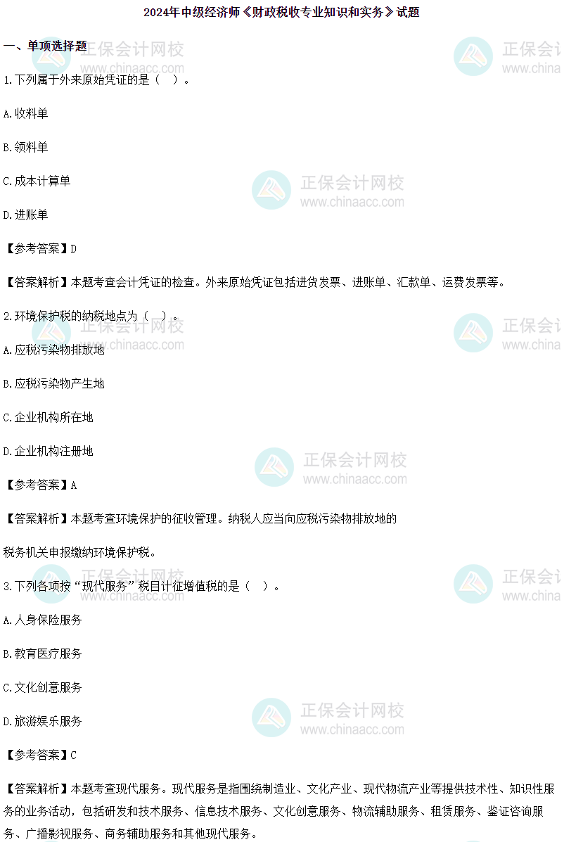2024年中级经济师《财政税收》考试已经结束,大家考得如何?正保会计网校根据学员反馈,整理了《财政税收》试题及参考答案(考生回忆版),快来看看!