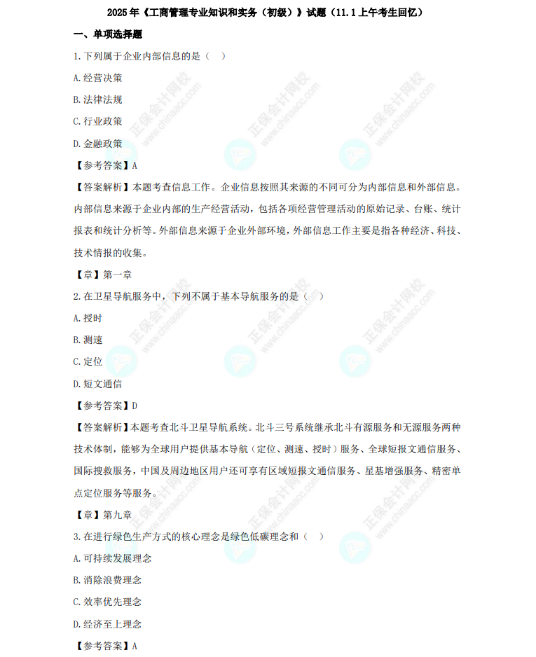 2025年初级经济师《工商管理》科目考试终于结束啦,同学们考的如何呢?正保会计网校特整理了2025年初级经济师考试试题及参考答案,供大家参考,一起来看看吧!